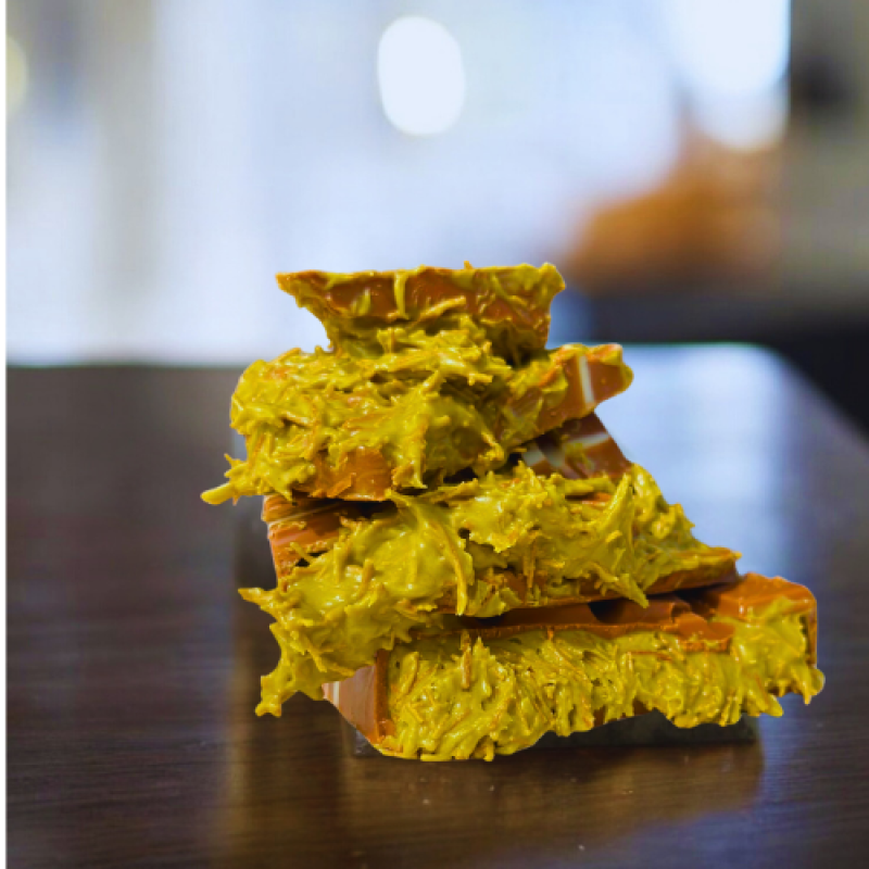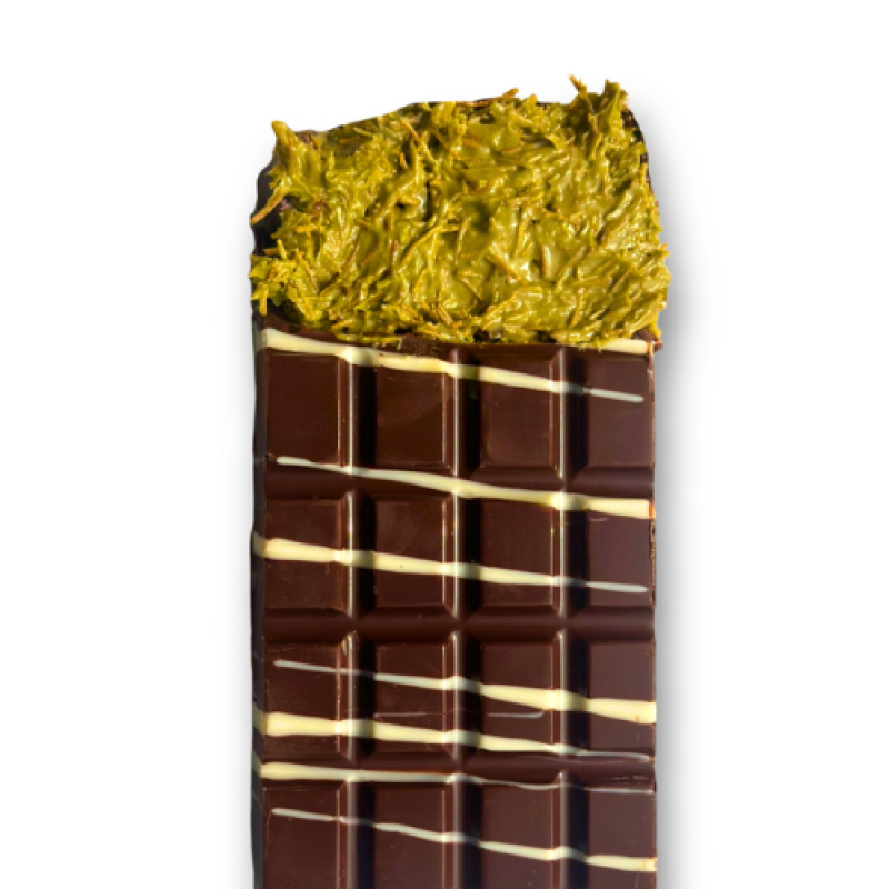 Nuestra barra, sin embargo, logra el equilibrio perfecto entre un chocolate suave de alta calidad y una generosa cantidad de salsa de pistacho rica. Los pistachos tostados añaden justo la cantidad adecuada de crujiente, asegurando que cada bocado sea una experiencia lujosa.
